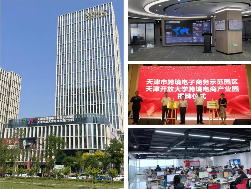 2018年,在天津市商务局的指导和推动下,天津开放大学、天津市跨境电子商务协会、天津津贸通国际贸易集团以项目制合作方式成立天津开放大学跨境电商学院。天津开放大学牵头,市商务局、天津中德应用技术大学等9所院校、12家跨境电商企业共同成立天津市跨境电商协会产教融合专业委员会。2020年,天津开放大学下属企业和天津津贸通国际贸易集团在市产权交易中心完成混改,依托混改公司推进天津开放大学跨境电商学院建设,标志天津开放大学跨境电商学院成为天津市首个混合所有制产业学院。2021年,依托学院申报的天津市级跨境电子商务产业示范园区(滨海高新区)暨天津开放大学跨境电商产业园获市商务局批准成立,天津开放大学跨境电商产业园也成为天津市首个大学产业园(市级)。园区以“人才招商”为特色,促进区域跨境电商产业的规模效应和集聚效应,服务学生就业创业,带动天津市以及中国北方地区的跨境电商产业的立体发展。