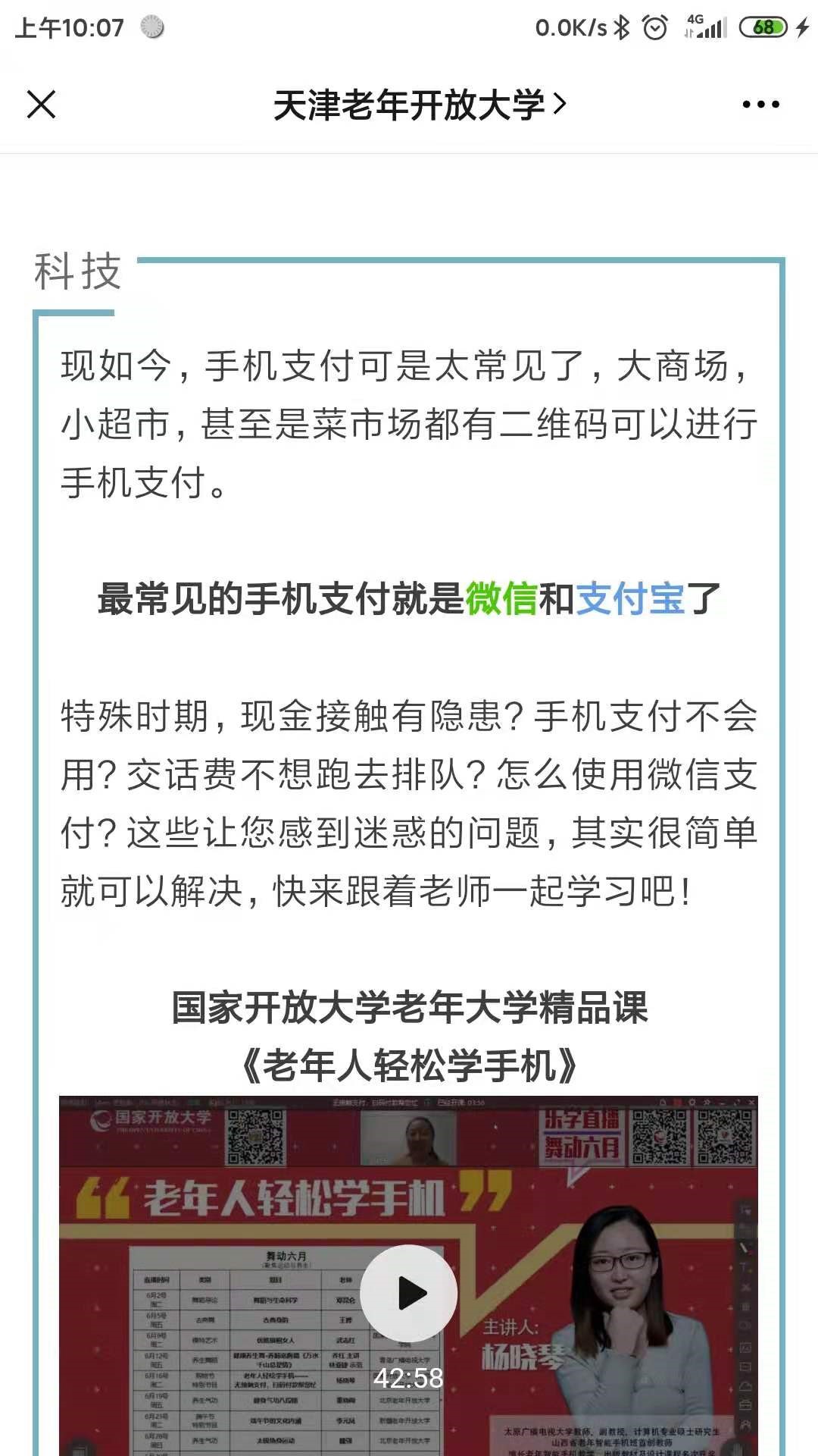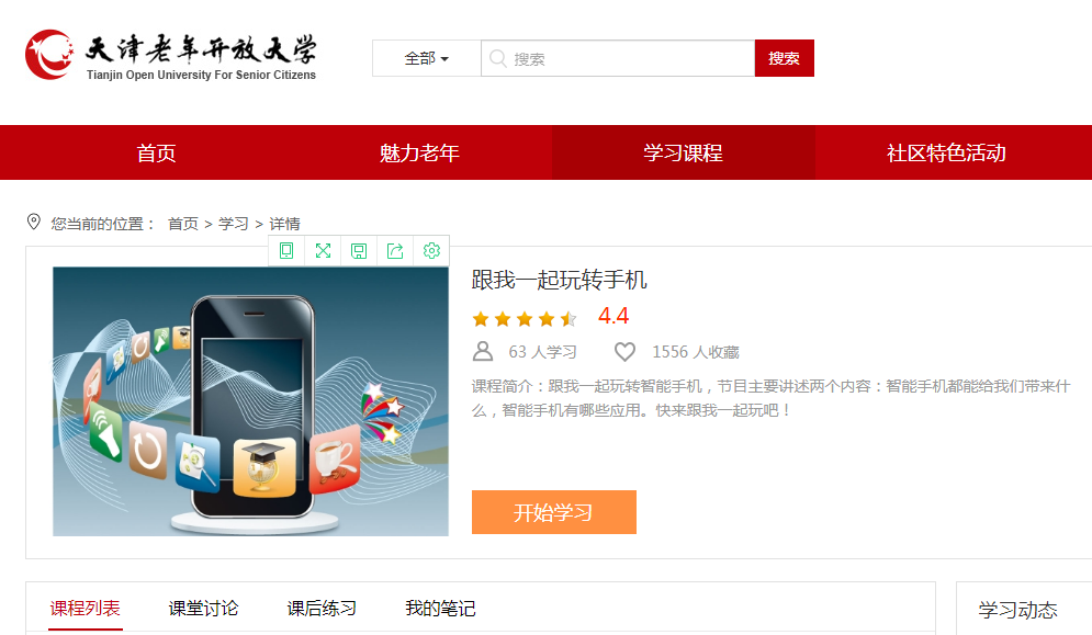 在即将开始的2021年春季学期,计划依托天津终身学习网,采用开设网络公益课程的方式,面向全市老年人免费开放玩转手机和电脑班课程内容,带领老年朋友一起学习智能技术,助力老年朋友跨越“数字鸿沟”。