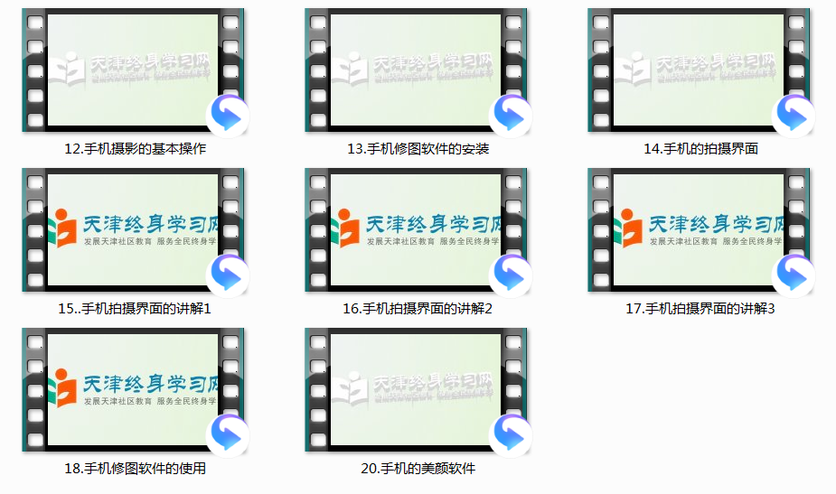 利用天津终身学习网发布“跟我一起玩转手机”、“智能手机操作系统”等智能手机系列视频课程,编辑出版“智慧科技生活”、“老年人i摄影”、“老年人i视频”系列智能手机应用教材,提供丰富的学习资源,为老年人线上线下、教学自学智能手机提供有力的支持。