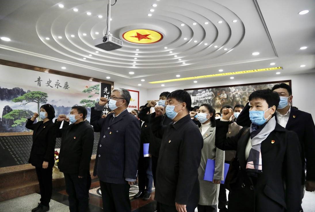 祭扫仪式结束后,全体党员来到革命烈士事迹陈列馆。面向党旗庄严宣誓,重温了入党誓词,随后参观了陈列馆。大家仔细参观展厅里的图片、文字、实物,深入了解革命先烈的英雄事迹,接受了一次革命传统教育的深刻洗礼,体会了先烈们的大无畏革命精神。
