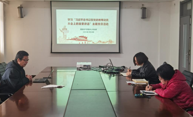 3月18日,国有资产管理中心党支部率先组织“学习习近平总书记在党史教育动员大会上的重要讲话”主题党日活动。支部书记刘澎表示,思想上与以习近平同志为核心的党中央保持高度一致,工作上才能明确奋斗方向,切实为群众办好实事,推动学校高质量发展。学校23个基层党支部陆续以主题党日活动的形式开展学习习近平总书记在党史学习教育动员大会上的重要讲话精神,掀起了党史学习教育热潮。