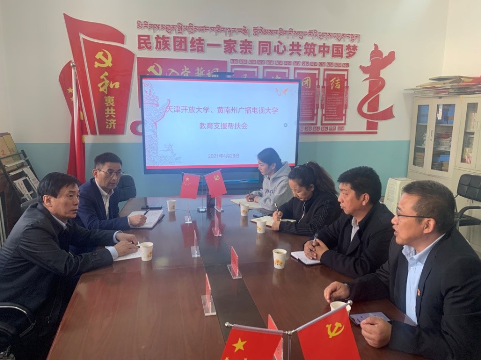 会后,副校长刘金明及有关部门负责人赴黄南州电大调研,对接落实2021年度工作计划。双方就派遣挂职人员、线上师资培训、跨境电商产业人才培养基地建设、成立天津开放大学乡村振兴学院黄南分院等方面的工作进行了深入沟通。调研期间,刘金明副校长一行还应邀参观了黄南州电大新校区建设,验收了学校捐赠的信息化设施。