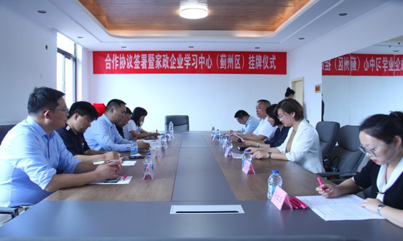 5月20日下午,乐赢娱乐注册 社会教育学部与蓟州区家政协会战略合作协议签署暨家政企业学习中心揭牌仪式在蓟州区家政协会举行。蓟州区妇联副主席郭力杰、蓟州区家政协会会长刘金刚,乐赢娱乐注册 社会教育学部主任黄正明、副主任谭金生等出席仪式。
