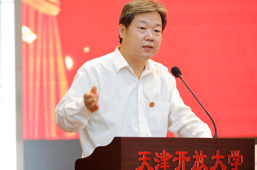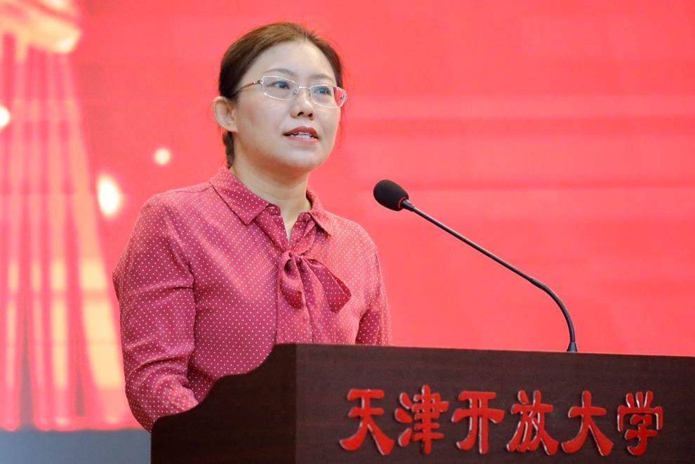 优秀校友代表、天津市北辰区瑞景街道宝翠花都社区党总支书记、居委会主任、2021年全国优秀共产党员林则银,分享了她在校学习的心路历程和在工作岗位上取得的优异成绩。她希望同学们能够坚定信念、内外兼修,在新时代天津开放大学“创新天开”“人文天开”“活力天开”“温馨天开”的氛围中,昂首阔步走向未来。
