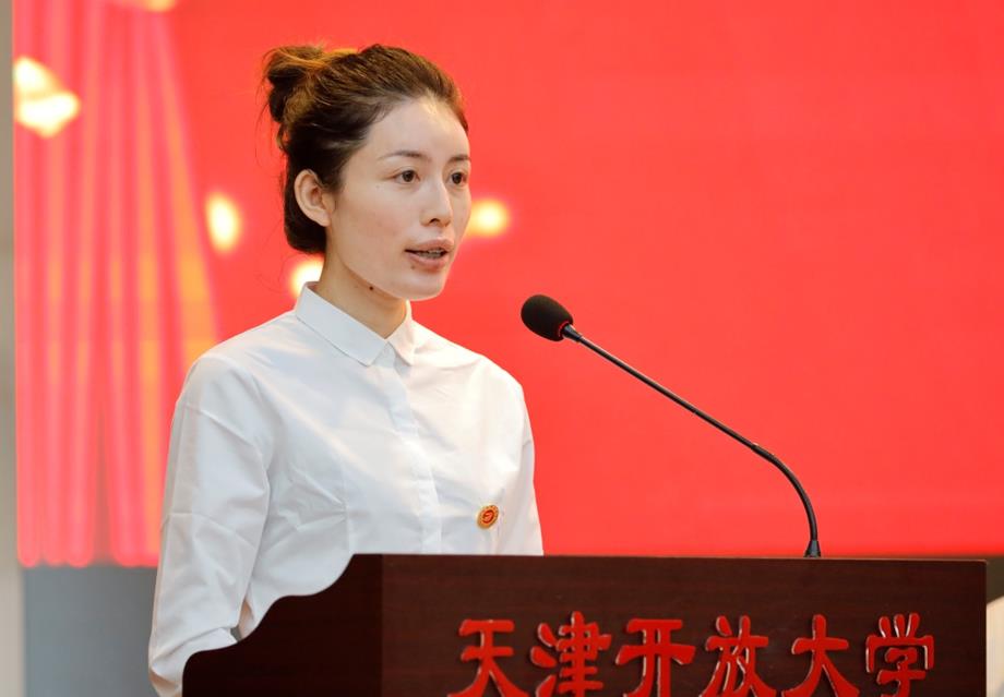 在校生代表、理工学部2021春机电一体化技术专业学生王雪分享了半年来在校学习的心得体会,介绍了自己逐步适应开放教育学习形式、养成自主学习习惯的过程,希望大家加强与老师们的沟通,尽快找到合适的学习方法,积极参加学校的活动,不断提升自己的综合能力。