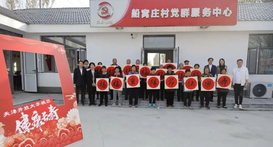 10月13日,在重阳节到来之际,乐赢娱乐注册 社区教育中心党支部、老年大学党支部,来到在宝坻区大钟庄镇宝船窝村,开展“ 党旗飘扬进社区 智慧助老帮扶行 ”志愿服务活动,表达对老年人的关爱,传承中华民族传统美德。40余名中老年村民参加了活动。