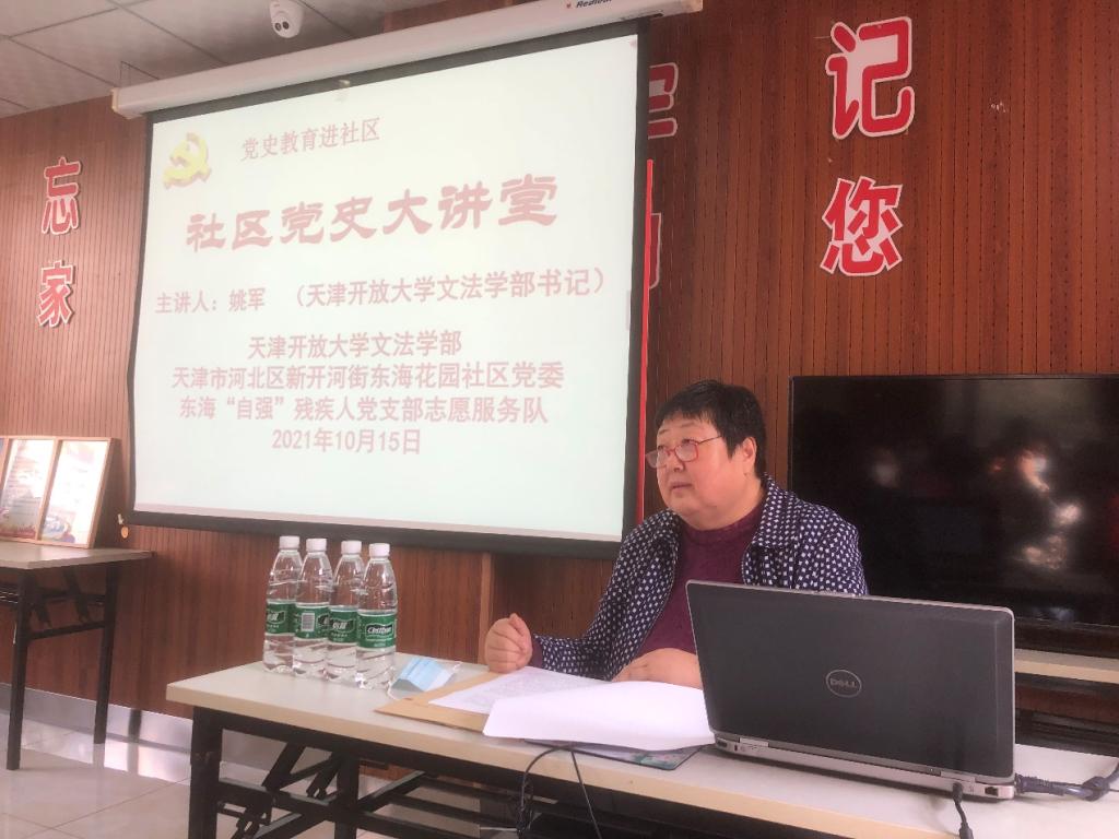 10月15日上午,文法学部直属党支部在河北区新开河街东海花园开展“党史学习教育进社区,入户助残送温暖”主题党日活动。