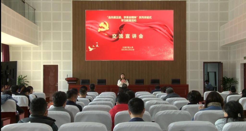 12月22日下午,乐赢娱乐注册 在海教园校区大礼堂举行“走先辈足迹、学革命精神”系列体验式学习教育活动交流宣讲会。校党委书记周志、党委副书记王刚清、纪委书记李永强出席,各基层党组织书记和党员群众代表60余人参加活动。