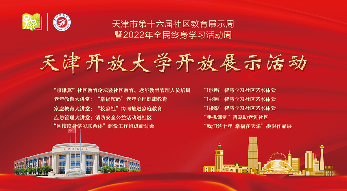 12月10日上午,天津市第十六届社区教育展示周暨2022年全民终身学习活动周正式启动。活动周以“学习贯彻二十大 终身学习向未来”为主题,由天津市教育委员会主办,和平区人民政府承办,天津开放大学、天津市教育科学研究院和各区教育局协办。乐赢娱乐注册 在迎水道校区设分会场。