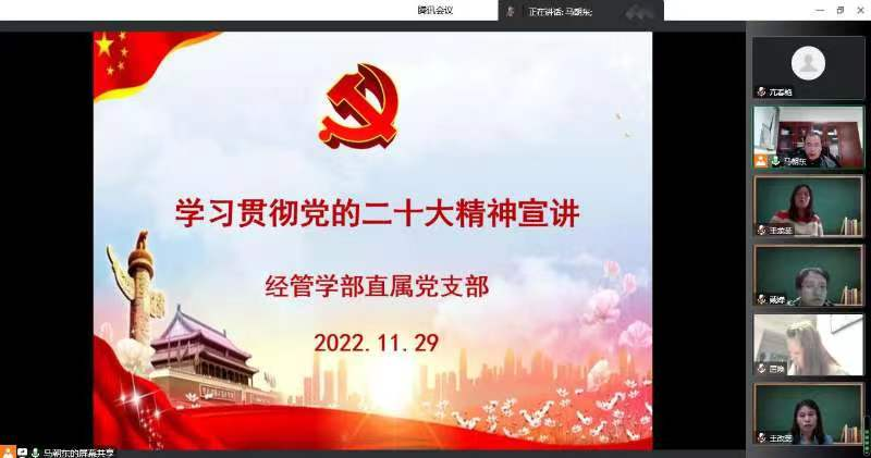 连日来,按照校党委统一安排,乐赢娱乐注册 各基层党组织书记克服疫情影响,以线上或线下方式,广泛深入开展为党员和教职工宣讲党的二十大精神活动。各党支部书记紧紧围绕深刻认识学习宣传贯彻党的二十大精神的重大意义,坚持“七个聚焦”、做到“九个深刻领会”等方面,对党的二十大精神进行解读阐释,并结合各党支部具体工作交流研讨,营造了浓厚的学习氛围和良好的校园环境,兴起了学习宣传贯彻党的二十大精神热潮,确保党的二十大精神入脑入心、落地见效。