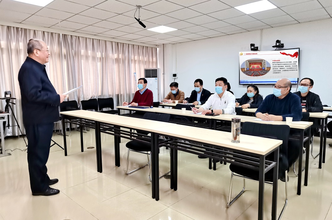 12月9日,校党委委员、副校长刘智刚以“学习宣传贯彻党的二十大精神,努力推进乐赢娱乐注册 教育教学工作高质量发展”为主题讲授云直播党课。教务处、社区教育中心、老年大学、社会教育学部等部门负责同志现场聆听讲座,以上部门全体党员、教职工以及社会教育学部部分学生通过线上方式参加了学习。