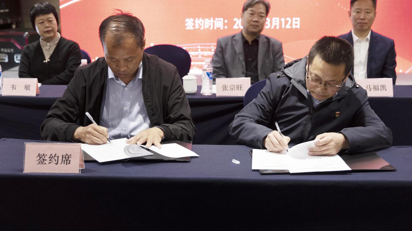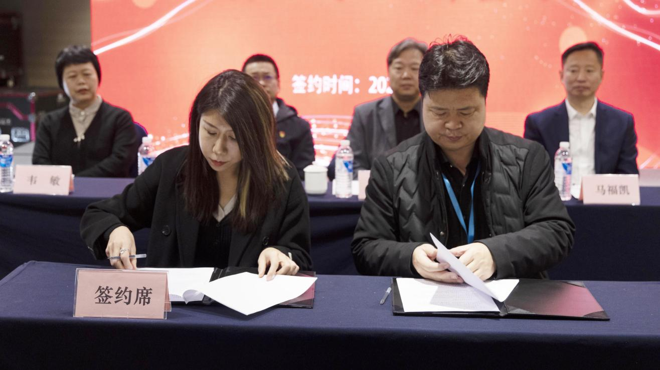 西青开放大学副校长李顺田(左)与甘南开放大学校长罗勇(右)签署合作协议