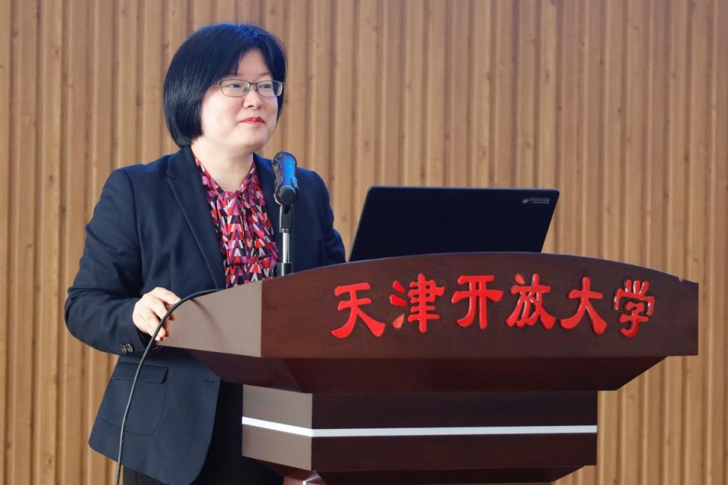 范贤睿副校长介绍了国家开放大学数字化转型工作进展、主要问题、对策举措及下一步工作计划。她强调,办学体系全体同志要在思想上同心同德、在目标上同心同向、在行动上同心同行,借助规模优势和体系力量,推进信息技术与教育教学深度融合,共同谱写开放教育高质量发展新篇章。