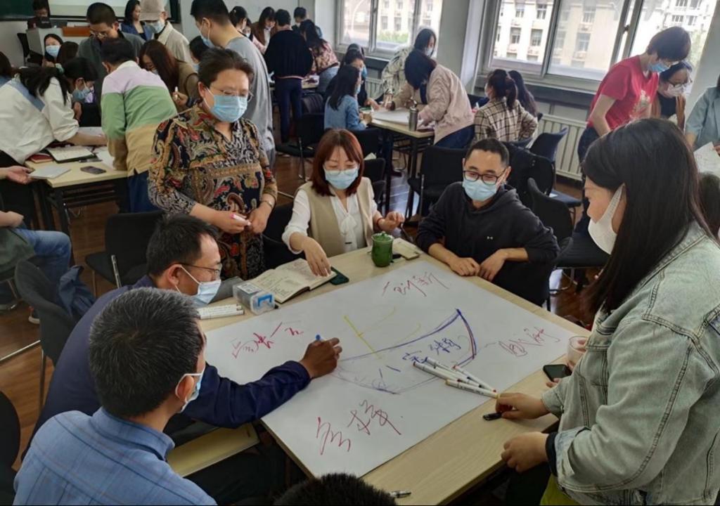蒋建荣老师首先以“生命的时间含义”为题,鼓励现场教师以相互问候的方式热身破冰,在逐渐浓厚热烈的氛围中完成了选拔组长、总结组长优秀特质、面对面“优点轰炸”等环节。随后,开展专项训练和案例教学,引导大家进行集体讨论、分享教学目标,诠释一名培训师应具备的沟通能力、人文关怀、敏锐的觉察力、知识的理解与应用、活动设计与呈现和突发事件的处理等六大基本素养;组织各小组创作队名、标识与口号,面对面建群分享作品和观看《大雁南飞》短视频,引导大家在共同创作下体会“独自前行走得快,结伴同行走得远”的道理,进一步提振团队协作精神,激发了干事创业的意志和决心。通过沉浸式地互动体验,带领大家亲身实践了传统学历教育与非学历教育教学模式上的区别和环境转换,理解了教书育人与能力成长深度融合的真谛。