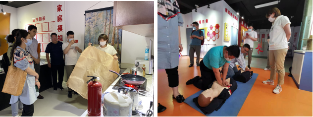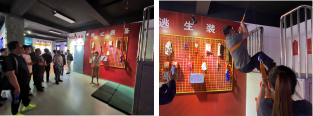 培训过程中,大家观看了消防安全视频,加深了对火灾等各种危害的认识;进行了模拟操作,如拨打报警电话、针对不同火源选取不同灭火器进行模拟灭火、模拟场景的火灾隐患排查等;亲身体验了VR虚拟逃生、高处缓降及逃生通道等多种逃生练习。此外,带队老师还教授了救援结绳、心肺复苏等安全技能。