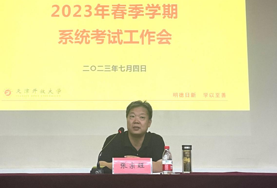 张宗旺校长在讲话中指出,开放教育正在从高速增长转向高质量发展的转型时期,必须要高度重视考试工作,切实抓好考风考纪,对考试过程中发现的问题“零容忍”,发现问题必须严肃处理。同时提出三点要求,一是提高政治站位,深化思想认识,严守考试安全底线;二是强化责任担当,压实考试主体责任,确保考试工作平稳有序;三是严肃考风考纪,加强组织管理,切实提升考试质量。