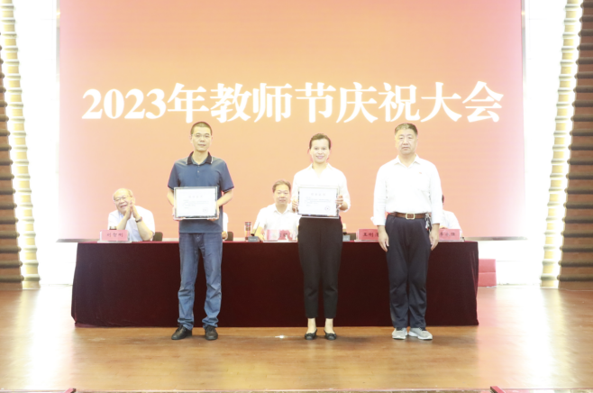 纪委书记李永强同志为荣获市级教学成果奖的代表颁奖