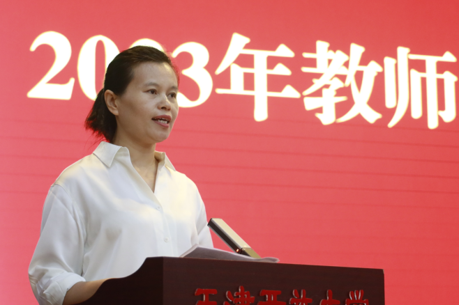 党委副书记王刚清宣读受表彰人员名单。大会表彰了从教30年教职工、荣退教职工、国家开放大学优秀青年教师、职称晋升人员、2022年高等教育市级教学成果奖获奖者、天津市青年教师基本功大赛获奖者、2022年度系统混合式教学课程思政说课大赛获奖者,乐赢娱乐官网 分别为受表彰人员颁发荣誉证书。