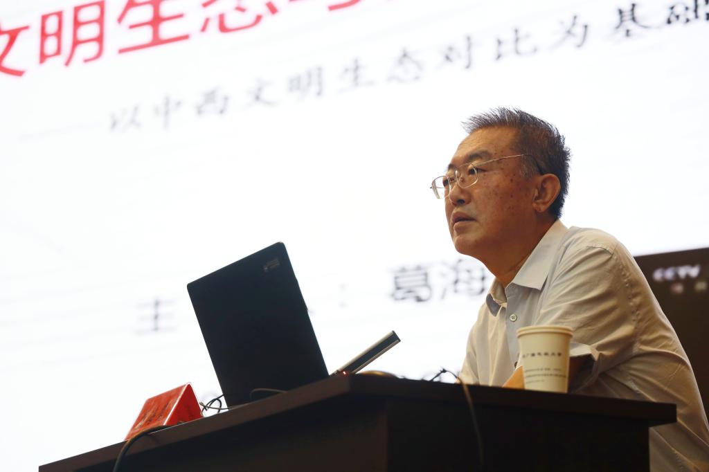 葛海鹰同志对文明生态的概念及渊源进行了解读,对世界当前主要的两大文明即中华文明和西方文明的创世神话和基本哲学思想体系进行了梳理,对人类文明的现状与未来进行了分析,研究认为西方世界的普世主义日益把文明引向冲突,西方文明带来的弊端日益凸显,日益严重;结合中国特色社会主义道路与中华民族伟大复兴,阐明了坚定文化自信和弘扬中华文明传统思想的迫切任务,为如何坚定文化自信和开展中华文明生态建设提出了建议。