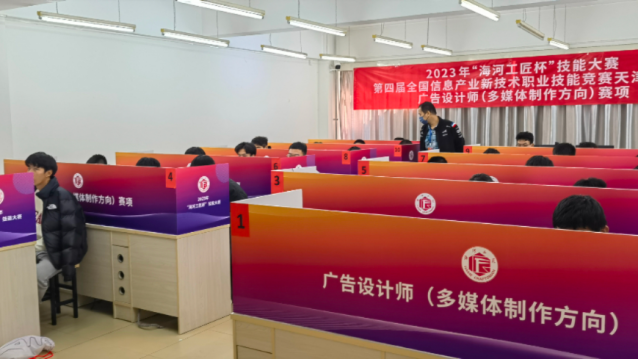 11月18日,2023年“海河工匠杯”技能大赛-第四届全国信息产业新技术职业技能竞赛天津选拔赛广告设计师(多媒体制作方向)赛项在乐赢娱乐注册 迎水道校区举办。来自21个学校和4家企业的31支学生组参赛队和25支职工组参赛队共118人参加。