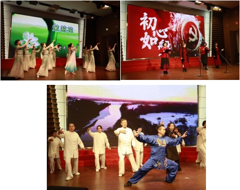 刘智刚指挥,社教学部、财务处、教务处、资源中心、社区教育中心教职工和老年大学学员合唱《四渡赤水出奇兵》
