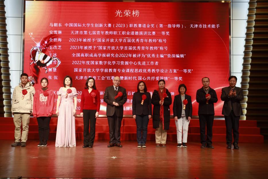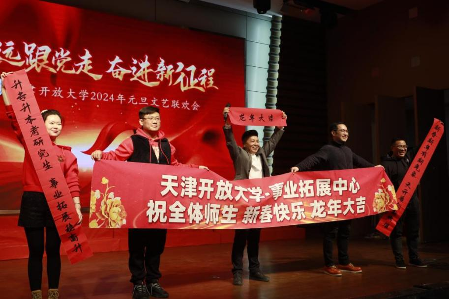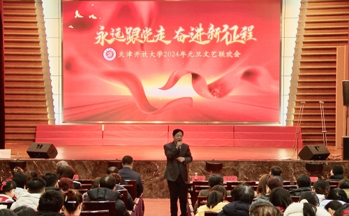 党委书记、校长张宗旺讲话,向全体教职工送上新年祝福。他指出,2023年,天开人坚守为党育人、为国育才初心,锐意进取,开拓创新;2024年,希望大家勠力同心、砥砺奋进,以新的精神面貌在开放大学高质量发展道路上昂首阔步、奋勇争先。