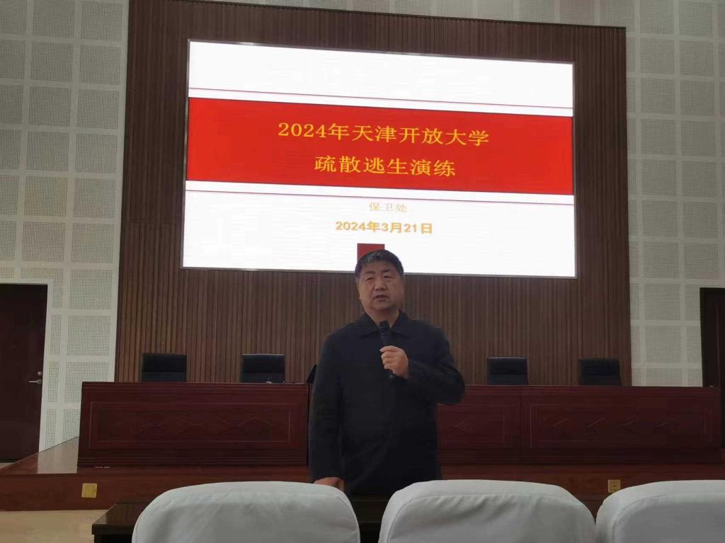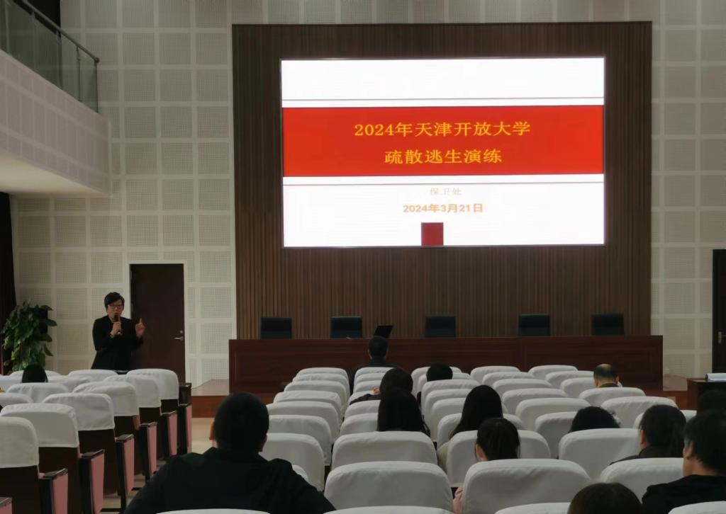 演练前,全体在校教职工、派遣人员、食堂、物业、保安、资产经营公司、天津海教园联合科技园发展有限公司、海教园大学科技园入驻企业人员观看了《2024年春季学校火灾疏散逃生演练公开课》,开展了消防安全相关知识的科普。保卫处负责人讲解了每栋楼宇设施情况、逃生路线基本常识、实操灭火演练注意事项等,要求各部门熟悉疏散逃生路线,掌握疏散逃生技能。