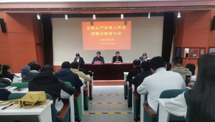 4月9日上午,乐赢娱乐注册 在迎水道校区多功能厅召开全面从严治党工作会暨警示教育大会。会议深入学习贯彻习近平总书记视察天津重要讲话精神和在二十届中央纪委三次全会上的重要讲话精神,贯彻市委、市纪委有关工作部署,落实教育系统全面从严治党工作视频会议精神,总结学校2023年全面从严治党工作成效,安排2024年重点工作任务。党委书记、校长张宗旺、党委副书记王刚清、党委委员、副校长李永强、党委委员、纪委书记李娟出席会议,处科级干部、基层党组织书记、基层党组织纪检委员(纪检联络员)参加会议。会议由党委副书记王刚清主持。