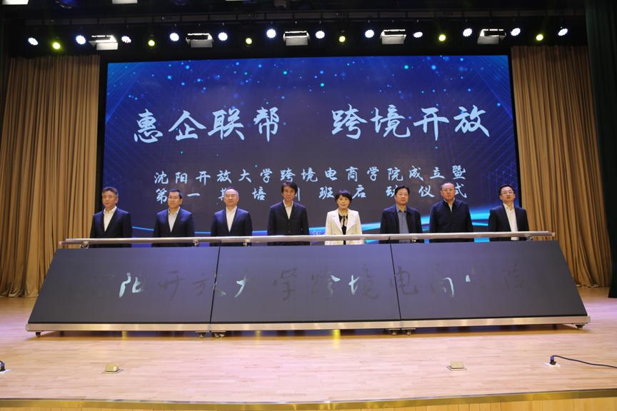 会上,张宗旺与王启明、杨志宏、李刚、伊焕斌、孙常福、任冰、徐磊共同为沈阳开放大学跨境电商学院揭牌。