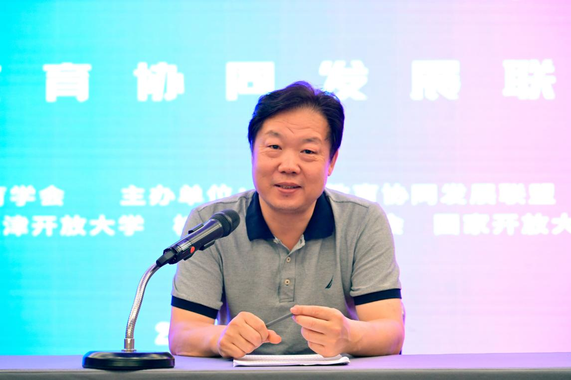国开出版传媒集团副总经理、联盟秘书长李永强,汇报联盟2023年工作情况并提出2024年工作计划。