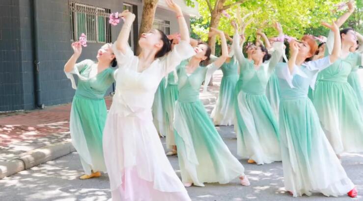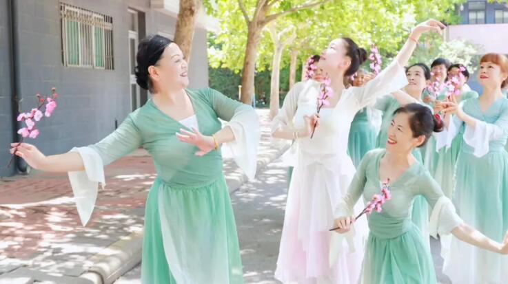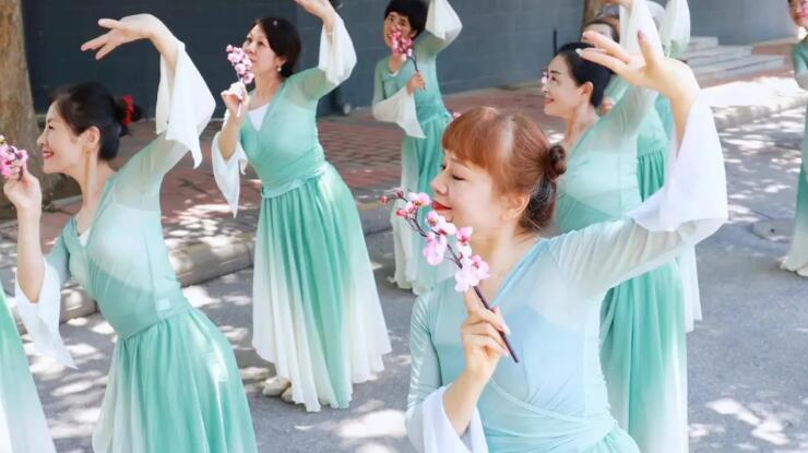 在校园中,舞蹈班学员在钟婷老师和张艺诺老师带领下以古典舞《折柳》献礼党的生日。
