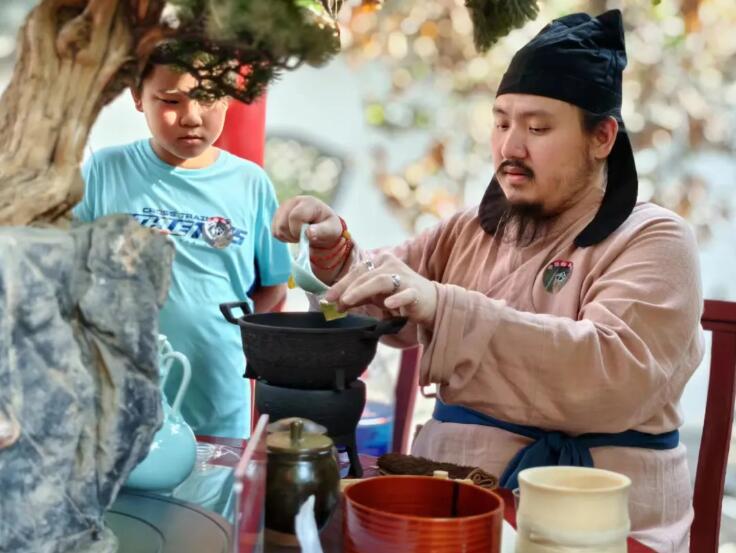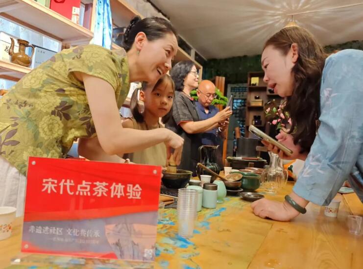 老年大学、理工学部师生志愿者走进南开区时代奥城社区开展“非遗进社区 文化共传承”主题活动,通过古曲演奏、仿宋点茶,仿唐恩施玉露品鉴等形式,展现中华传统文化魅力,赞美新时代,献礼党的生日。