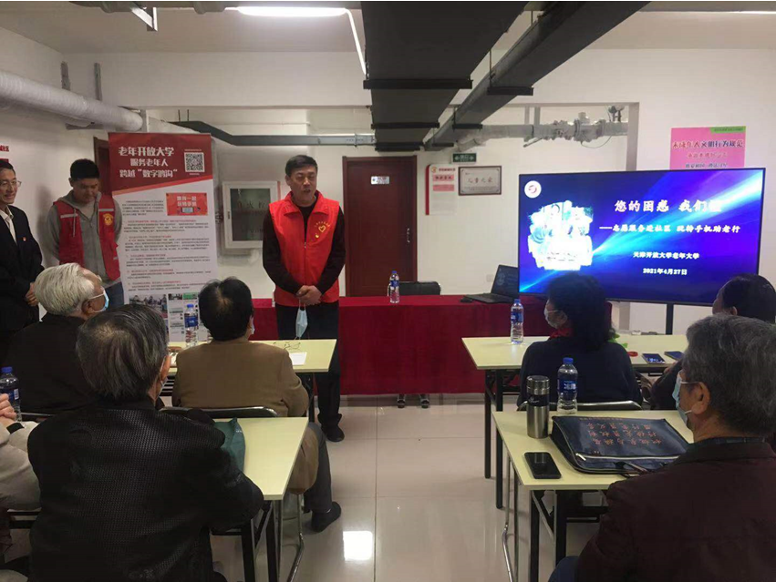 后勤服务中心党支部书记李增成首先向前来参加活动的老年朋友表示欢迎,并介绍了乐赢娱乐注册 服务全民终身学习的宗旨和在党史学习教育中深入社区为群众办实事的相关举措。