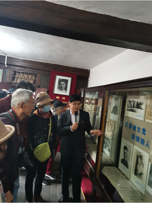 党员们参观了宁河区俵口镇于方舟烈士故居,重温中国共产党人在天津的光辉革命历史。于方舟烈士曾与周恩来同志在天津一起从事革命活动, 传播革命火种,发展革命力量,是早期天津地方党组织创始人之一,也是天津 “五卅运动”杰出的领导人之一,被后世称为“津门之光”。大家怀着无比崇敬的心情,观看了故居内的珍贵图片、文献资料及于方舟烈士的遗物,了解于方舟同志的生平事迹,缅怀铭记于方舟同志的丰功伟绩。党员们面向鲜红的党旗和各种展品,表达了不忘初心、牢记使命的坚定信念和决心。老同志们纷纷表示,要以烈士为榜样,大力弘扬革命传统和革命精神,守初心,担使命,努力发挥共产党员的模范带头作用。
