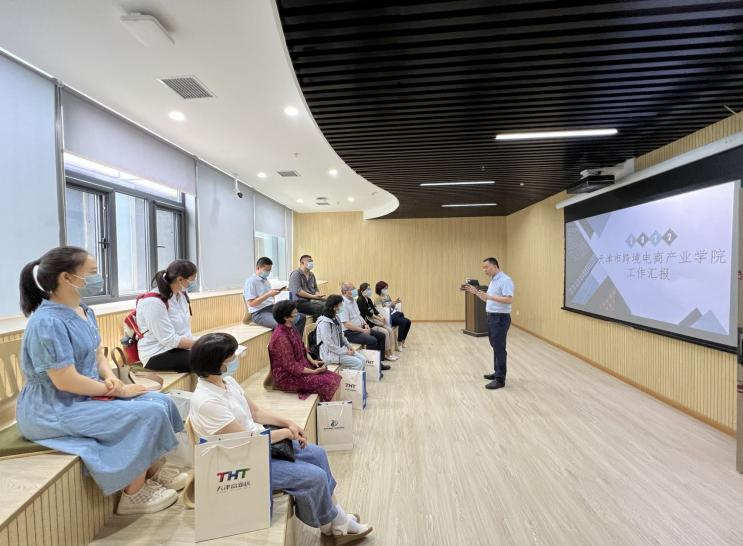 活动首站,全体人员深入学校跨境电商产业园,实地了解学校推动综合改革、特色学院建设,助力产业发展,实现人才培养与经济社会发展无缝对接的举措与效果。在参观园区展示厅、实训教室、产品展览室、营销直播间等场景后,跨境电商学院院长平凡介绍了产业园建设、促进大学生就业创业等方面工作。