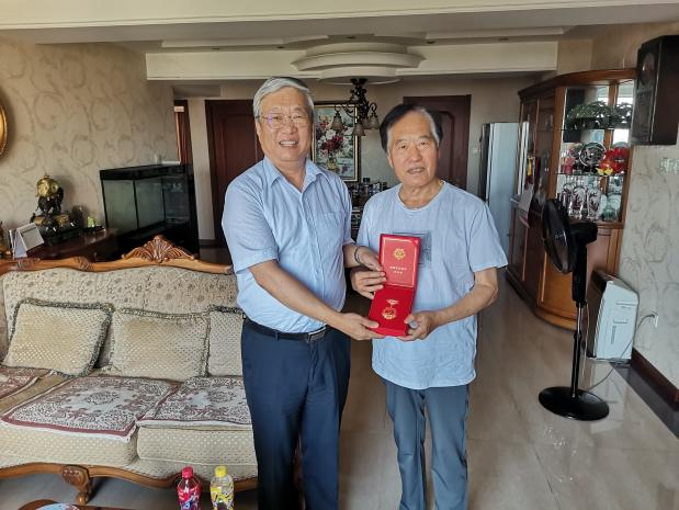 在庆祝中国共产党成立101周年前夕,校党委领导班子成员周志、张宗旺、王刚清、刘金明、刘智刚分别带队走访慰问了乐赢娱乐注册 达到50年党龄的老党员赵凤祥、牛虹、陆沣理、杨作清、汤淑芝等同志,向他们颁发了“光荣在党50周年”纪念章。