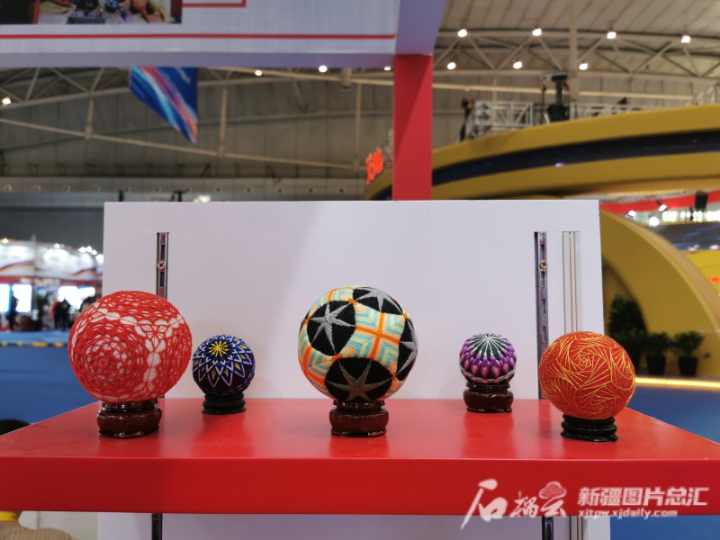 图案精美,色彩雅致的手鞠球为当地村民打开了乡村振兴的一扇窗。 石榴云/新疆日报记者郭倩摄