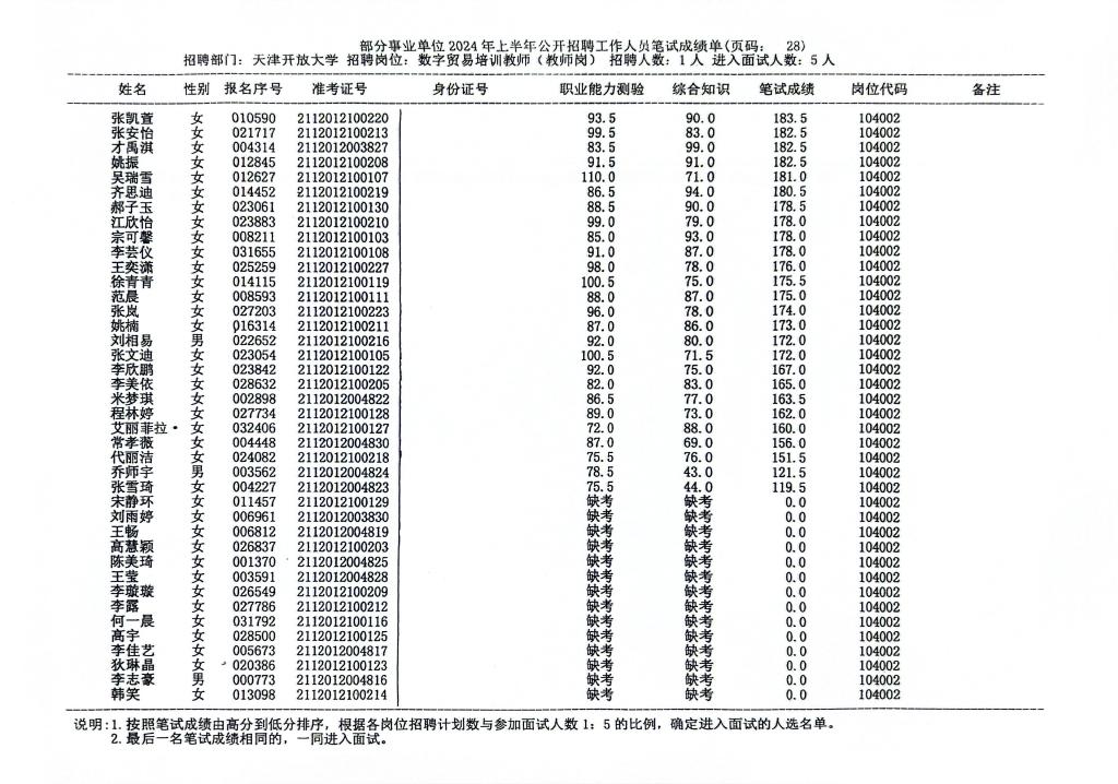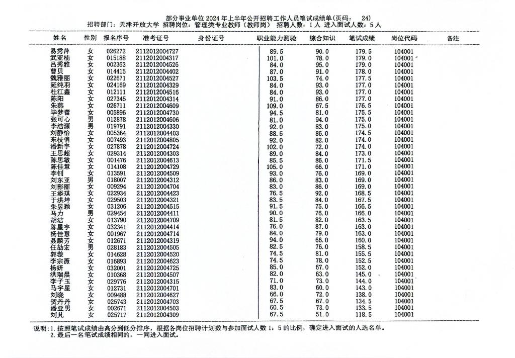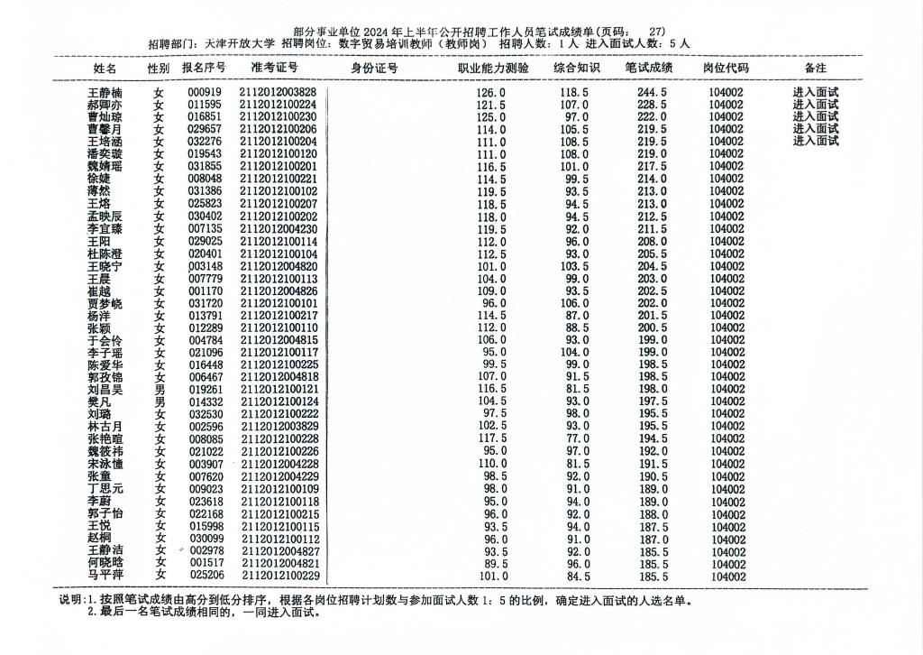 按照《天津开放大学2024年第二批公开招聘方案》的要求,现将乐赢娱乐注册 2024年第二批公开招聘工作人员笔试成绩公布如下: