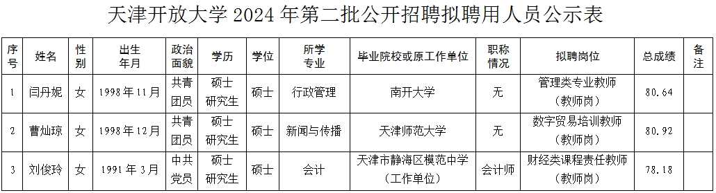 下一条:天津开放大学第一批公开招聘(副高或博士岗位)部分岗位拟聘用人员公示