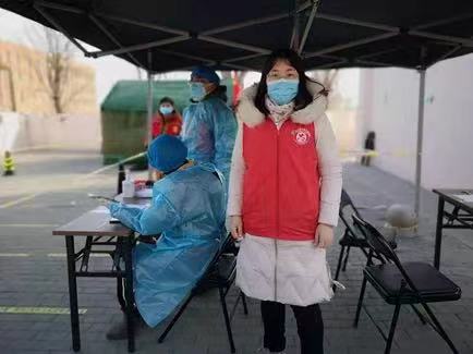 王改芝老师所在的津南区是此次疫情突发的主要区域,截至1月20日已经进行了9次筛查。她无惧困难,逆行而上,站在了抗疫一线。从负责挨家挨户登记居民核酸检测信息的楼筛队长,到陪同医护人员入户给100多个家庭核酸检测的“大白”,王改芝老师强忍腰椎颈椎的疼痛,从夜幕降临工作到东方破晓。第二天一早,她又号召自己的爱人接力,加入“知香园大筛”志愿服务大军,两人轮班组成抗疫“夫妻档”,共筑战“疫”长城;儿子也为一线医护人员送去“暖手水瓶”,为白衣天使带去温暖。在换班休息期间,王改芝老师又当起了“小程序楼筛负责人”,她详细统计每一户居民的具体情况,记录每一项特殊需求,她整理的“动员术语”被居委会工作人员列为了模板。连续几天的志愿服务虽然辛苦,王改芝老师却说:“虽然疫情来得突然,但只要我们团结一致,大家小家共同努力,就一定能够打赢这场战‘疫’阻击战。”