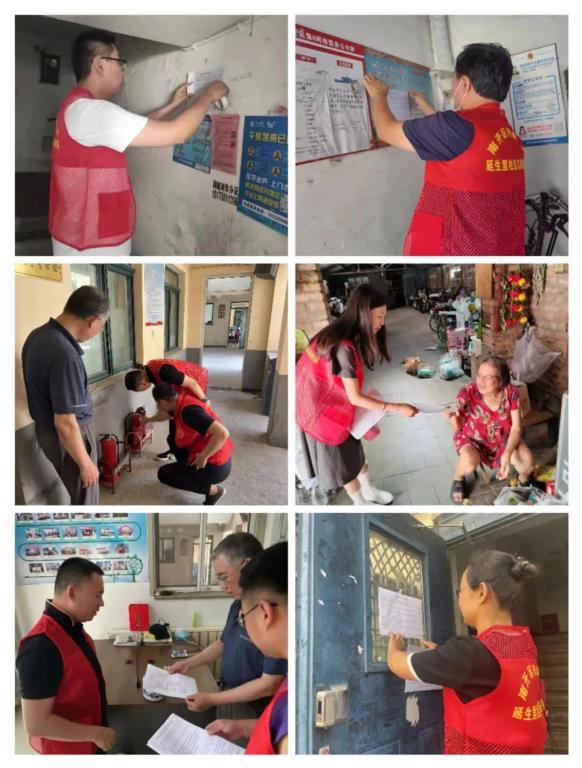 党员们穿起红马甲,走进各个片区,深入居民楼逐门宣传消防安全常识,张贴安全常识提示单,检查灭火器是否过期。将《消防安全常识提示单》张贴到所到楼门显著位置,并耐心地向居民们讲解消防安全知识。