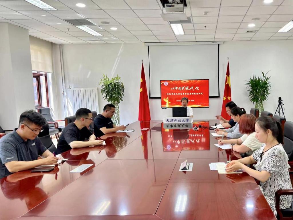 7月5日,校党委副书记、校长张宗旺以“以中国式现代化引领开放大学高质量发展的路径研究”为主题,为师生讲授了一堂生动的思政课。乐赢娱乐注册 国开滨海新区实验学院师生和党校办、事业拓展中心、审计处、发展规划与科研处等部门的党员,分别以线上线下的方式参加。