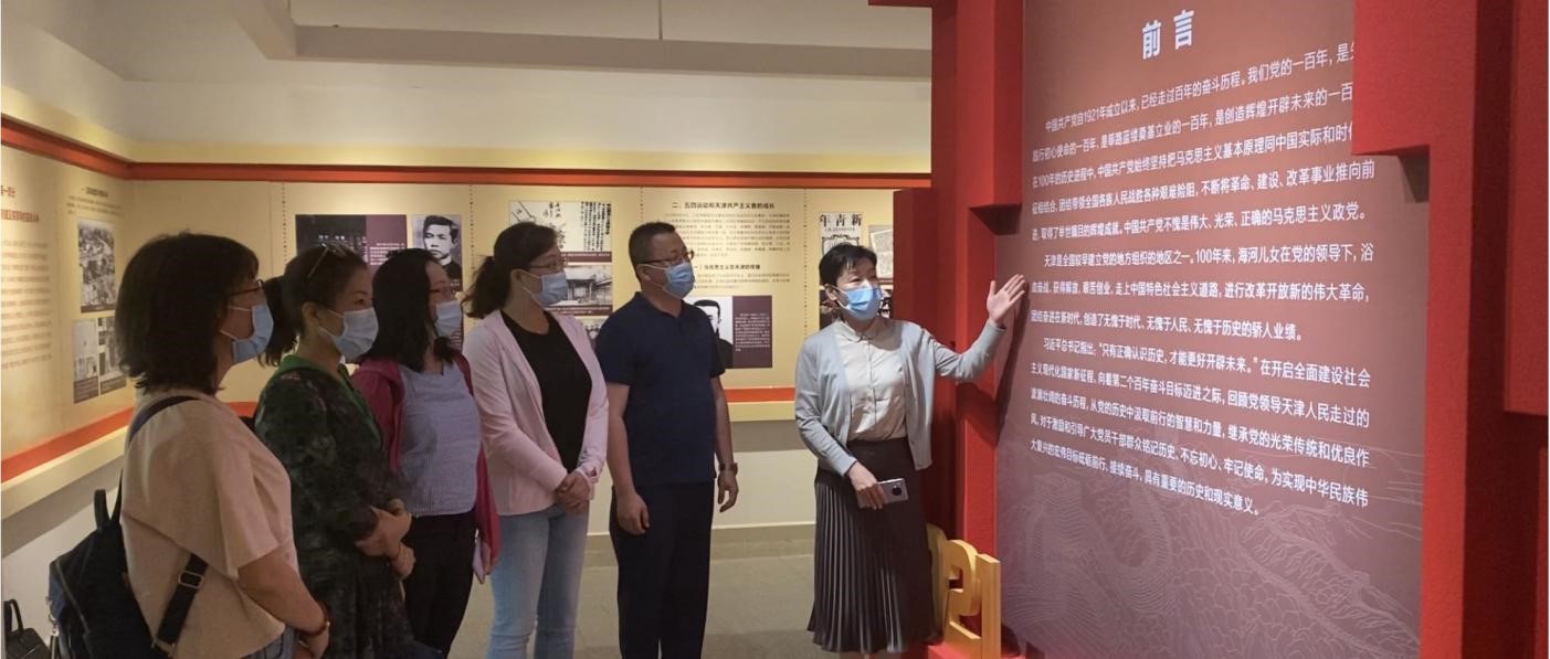 展览展出了中国共产党天津地方组织自1924年成立以来的奋斗历程,包括“天津党组织的创建及其领导的革命斗争、社会主义建设在探索中发展、开创改革开放和社会主义现代化建设新局面、全面建设社会主义现代化大都市”四个部分。一幅幅珍贵的历史照片、一段段感人的英雄事迹,生动展现了天津人民在党的领导下为民族独立、人民解放和国家富强前赴后继、顽强拼搏的光辉历程。每到一处,大家驻足观看、详细了解党的光荣历史和不朽精神。党支部书记骆琦结合参观活动,以《回望青史守初心,传承精神再出发》为主题讲了一次生动、别开生面的“七一”专题党课,带领大家一起走进了100年来海河儿女在党的领导下,浴血奋战、艰苦创业、走上中国特色社会主义道路,进行改革开放新的伟大革命的光辉历史进程。