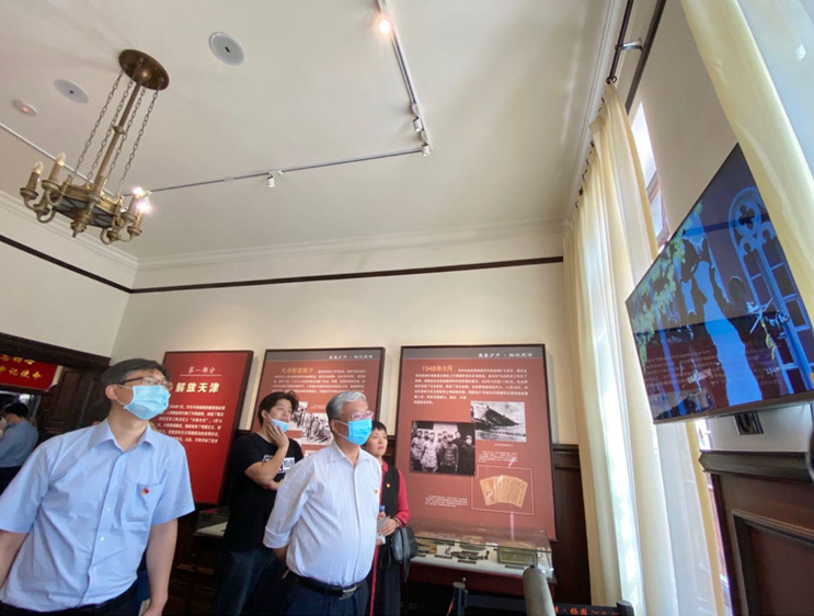 《奠基岁月——天津市军管会和中共天津市委在张园》主题展,分为解放天津、接管天津、建立巩固人民政权、建设天津、加强党的建设和完成社会主义改造六个部分。通过200余幅图片、100余件文物展品,生动还原了1949—1956年期间党在天津的发展历程,展示了天津军管会和市委领导天津人民解放天津、建设天津所取得的辉煌成就和宝贵经验。伴随着讲解员生动细致的讲解,大家认真参观展览,不时提出问题并讨论,重温革命先辈感人事迹,感受革命斗争艰难历程。