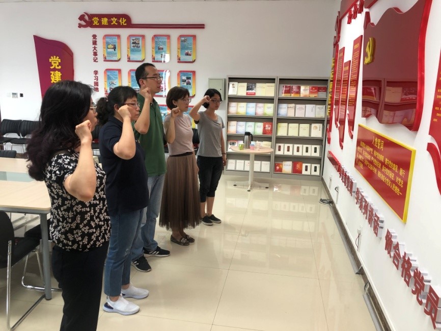 支部书记谢馨首先带领党员重温入党誓词,随后支部党员代表孙一凡重读了入党志愿书,与大家分享了自己十多年前从入党思想萌芽到正式宣誓入党的思想变化过程及党史学习教育体会。