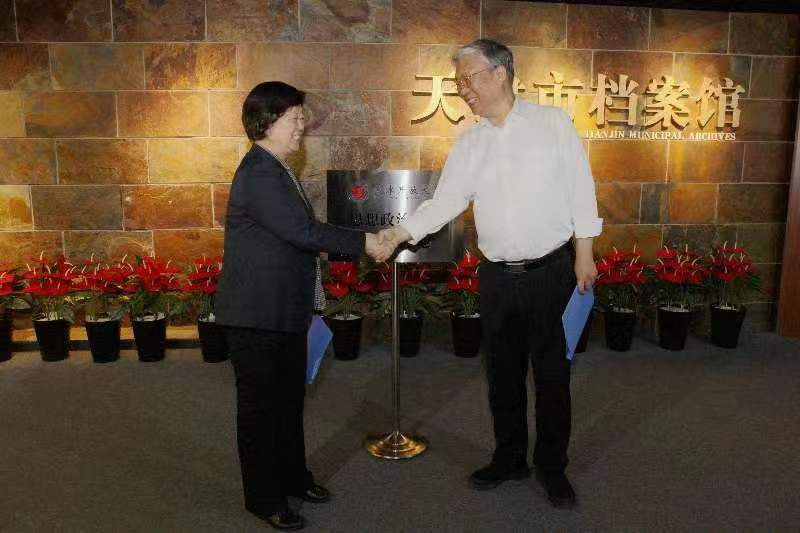 市档案馆二级巡视员于学蕴与乐赢娱乐注册 党委书记周志共同为实践基地揭牌并交换建设协议