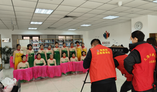 文德花园社区活动丰富,建有健康太极、新疆舞、柔力球等9支老年活动社团。资源研发中心的同志们根据每支社团不同的风格,耐心指导社团成员调整站位、造型、妆容和表情,力图展现新时代老年人最美精神风貌。